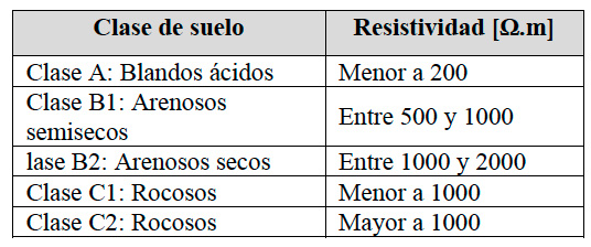 El suelo tiene diferentes características que afectan la capacidad de conducir electricidad, como la humedad, composición química, compactación del material, concentración de sales, temperatura, entre otros; por tanto, los terrenos no tienen una resistividad homogénea ya que cada punto del terreno tiene características diferentes, sin embargo, se pueden clasificar entre un rango de valores que permiten determinar el tipo de terreno como se muestra en la (Tabla 1), y para determinar estos valores se usa un equipo de medición llamado telurómetro.