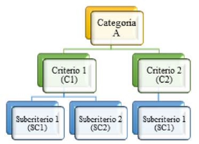 El AHP es un Análisis Jerárquico de Procesos que permite tomar adecuadas decisiones cuando son influidas por criterios o factores [12]. Esta metodología fue desarrollada por el matemático Thomas Saaty a finales de los años 60 y actualmente constituye una de las principales herramientas para los procesos de toma de decisión. El fundamento matemático del AHP está basado en la comparación por pares, ordenados por importancia en función de un criterio representado en una jerarquía de decisión, jerarquía que el evaluador propone según su criterio [13].