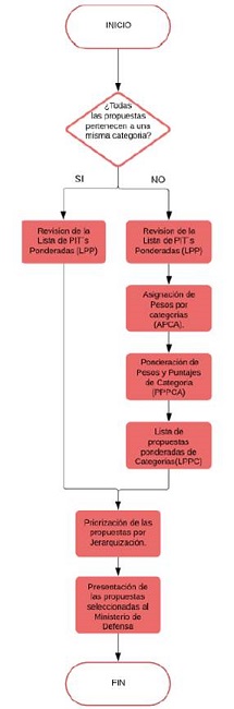 El objetivo de este estudio es proponer un método matemático práctico que permita al Ejército Nacional de Colombia la selección y jerarquización objetiva, de propuestas de innovaciones tecnológicas, dicha priorización, posteriormente, se presenta ante el Ministerio de defensa para el estudio de la inversión en función del presupuesto nacional.