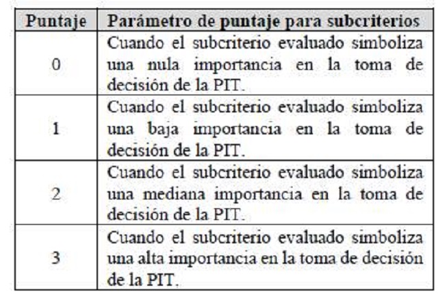 Dado que los criterios de evaluación para todas las PIT son diferentes, se presenta en la Tabla 4 la descripción de cada criterio propuesto para evaluar la PIT objetivamente.