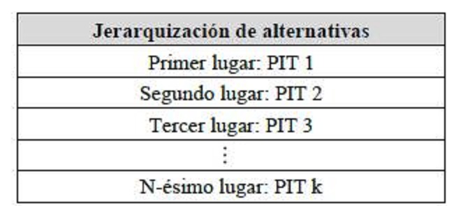 Una vez el MOPGIITEC obtenga el valor ponderado de categoría para cada una de las PIT's, lo que sigue es ordenarlas de mayor a menor.