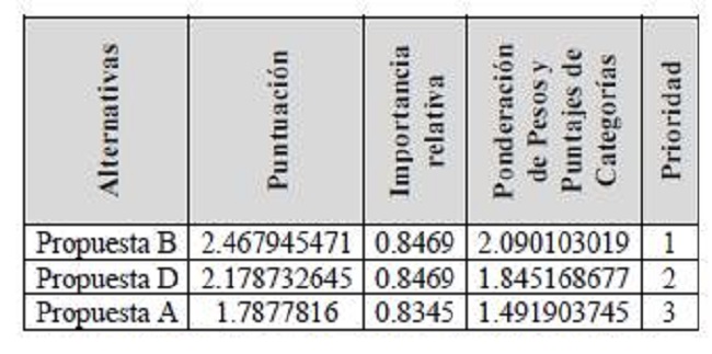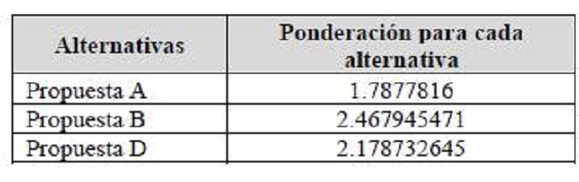 La lista de propuestas ponderadas en este caso corresponde a la presentada en la Tabla 21.