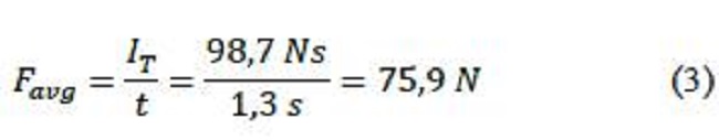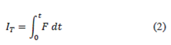 A partir de la curva carga (N) vs. tiempo (s) obtenida por medio de la prueba estática fue posible determinar el impulso total (IT) del motor cohete. El impulso total (IT) se define como la integral del empuje (F) durante el tiempo de propulsión (t) del motor (ecuación 2):