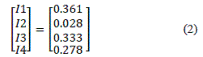 Dando solución a la Ecuación 1 arroja como resultado los valores de la Ecuación 2, concluyendo que I1 obtuvo el mayor puntaje, por lo que el sensor GROVE UV es la mejor opción para la medición de la radiación UV con una ponderación de 0.361.