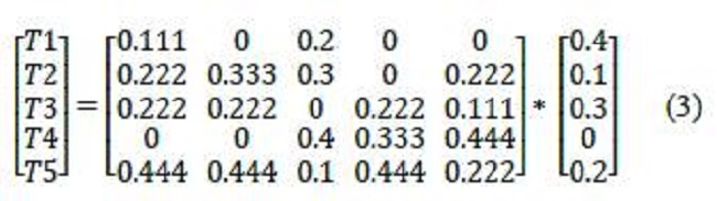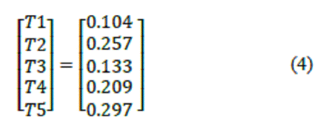 En la Tabla 1 se observa la comparación de los cuatro atributos entre los diferentes sensores empleando las matrices de coeficientes de énfasis; se construye la matriz de decisión de la Ecuación 3, la cual agrupa los pesos de la matriz de atributos y las matrices de coeficientes de énfasis; donde T1-AMT1001, T2-AM2301, T3-SHT10, T4-DHT11, T5-DHT22.
