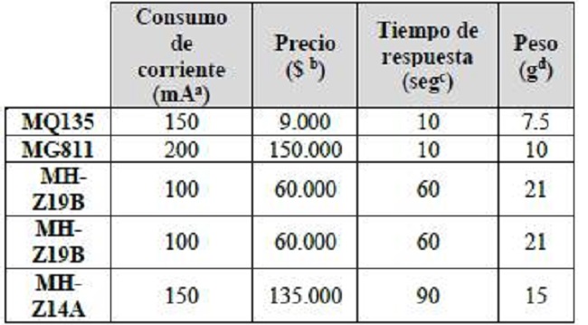 Solucionando la Ecuación 5 se obtienen los resultados de la Ecuación 6, donde el sensor MH-Z19B es la mejor opción para la medición del CO2 con una ponderación de 0.398.