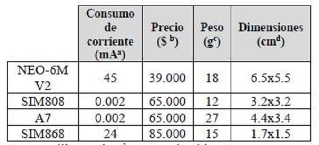 Sistema de posicionamiento global: la Tabla 7 contiene variedad de módulos GPS con sus diferentes características para obtener la localización de las mediciones. A través de la Tabla 1 se compararon los cuatro atributos entre los diferentes sensores empleando las matrices de coeficientes de énfasis; con ello se construye la matriz de decisión de la Ecuación 9, la cual agrupa los pesos de la matriz de atributos y las matrices de coeficientes de énfasis; donde H1-NEO-6MV2, H2-SIM808, H3-A7, H4-SIM868.
