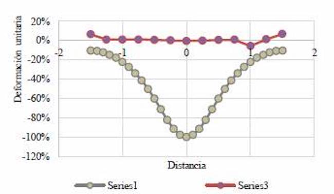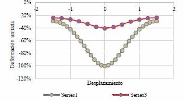 Las deformaciones unitarias, esfuerzos y desplazamientos resultados de la modelación se presentan en las siguientes graficas: