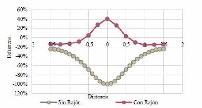 Se deberá colocar el rajón al mayor porcentaje de penetración posible, esto hace que se presente mejor comportamiento (disminución de deformaciones, esfuerzos y deformaciones).