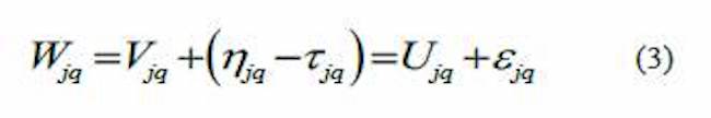 El subíndice j se refiere a la alternativa (SETP con subsidio) considerada y q se refiere al individuo q-ésimo en la muestra. Asumiendo Tjq homocedástica, la ecuación puede reescribirse como: