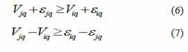 Donde los subíndices i y j se refieren a las alternativas en el modelo binario. Esto es:
