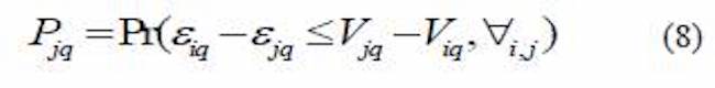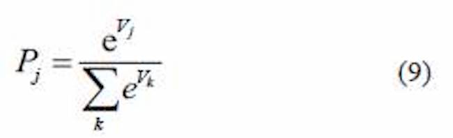 Dado que el individuo elige la opción que maximiza su utilidad, no se conoce el valor del lado derecho de la última desigualdad presentada, y el procedimiento para determinar la probabilidad de elegir el modo j (alternativa j) por el individuo q viene dado por: