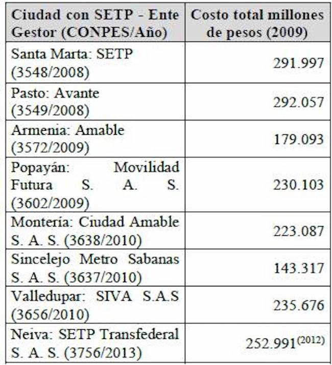 Luego, al contrastar la situación de movilidad actual de cada ciudad respecto a lo formulado en los proyectos, se genera incertidumbre en el Gobierno nacional y en los entes gestores y territoriales, ya que los estudios que soportan la estructuración de los SETP (documentos CONPES que datan del 2008 según ciudad) requieren de actualizaciones en todos los componentes, pero especialmente a nivel técnico, legal y financiero.