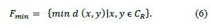 De la misma forma, en la ecuación (6) se define el diámetro mínimo Fmin, el cual se obtiene al cambiar la orientación de los planos y obtener el valor mínimo de distancia entre pares de píxeles en Cr.