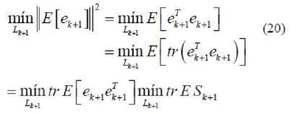 Para determinar el valor de la ganancia Lk + 1 que minimiza el criterio de optimización [13]: