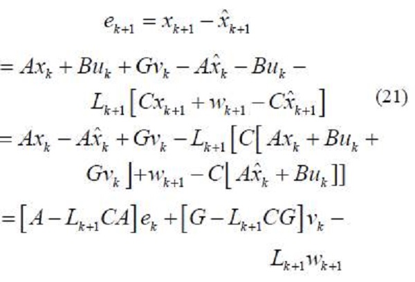 Se desea obtener la matriz de ganancia del observador del sistema (L), la cual debe elegirse de forma que se obtenga la mejor estimación de estados del sistema, de tal manera que rechace cualquier ruido presente en el proceso (vk y wk) [3].