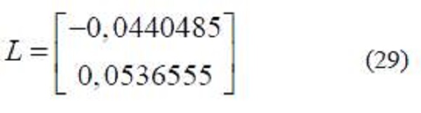 Finalmente, con la estimación de estados obtenida, se calcula la ganancia L para el diseño del filtro de Kalman [18].