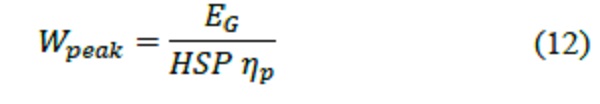 Los vatios pico (Wpeafc, watt peak) del sistema fotovoltaico puede ser calculados empleado la ecuación 12 [24], [26].
