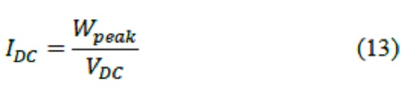 Wpeak es igual a 356,37 Wp. La corriente total del sistema fotovoltaico (IDC ) es calculada dividiendo Wpeak por el voltaje del sistema (VDC ), usando la ecuación 13 [24], [26].