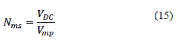 Donde Imp es la corriente para máxima potencia. El número de módulos a ser conectados en serie (Nms ) se calcula empleado la ecuación 15 [24], [25].