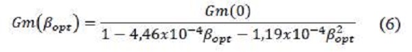Donde Gm(βopt) es el valor medio mensual de la irradiación global sobre una superficie con inclinación óptima (kW h/m2). Gm(0) es la media mensual de la irradiación global sobre una superficie horizontal (kWh/m2). βopt es la inclinación óptima de la superficie.