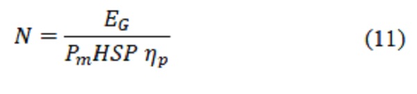 Del balance energético planteado, el número de módulos se calcula usando la ecuación 11 [22], [26].