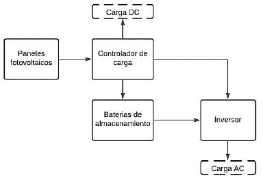 El árbol solar se puede diseñar de forma aislada o conectado a la red. Para la seccional de la Universidad de Antioquia se ha decidido diseñar un árbol aislado de la red, por lo tanto, la energía generada se debe almacenar en baterías mediante un controlador de carga. Durante el día, cuando la irradiación solar es suficiente para hacer frente a las cargas, los paneles fotovoltaicos alimentan directamente a las cargas. Cualquier exceso de energía eléctrica después de cumplir con las cargas debe almacenarse en baterías. La energía almacenada en baterías se puede utilizar cuando la generación del sistema fotovoltaico no es suficiente.