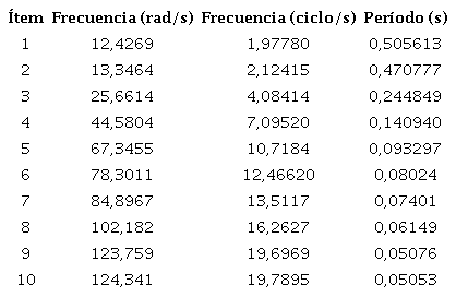 En la tabla 9 y tabla 10 se presentan las frecuencias naturales y las reacciones en la base de la estructura, respectivamente.