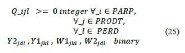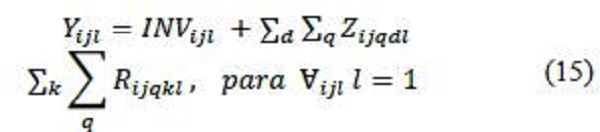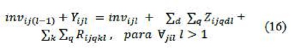Restrictions of inventory balance: It is assumed that the producer at the time of the start of the planning period in 1= 1 does not have inventory (The harvest in period 1 is equal to the inventory at the end of that period plus the shipments to intermediaries and wholesalers during the period); and subsequently 1> 1 (The initial inventory of the period, plus the harvested in the period is equal to the final inventory of the period plus the brokers and retailers made in that period).