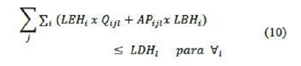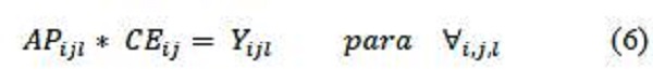 Production capacity constraint: The amount harvested Yjil is dependent on the area of the plots harvested in the day (APiji) and the expected harvest (CEij).