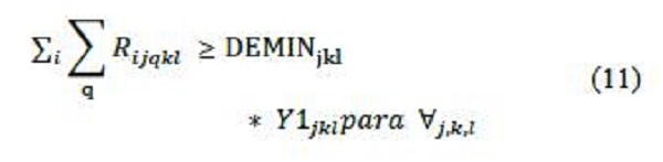 DEMINjkl = Product demand j by the intermediary k the day 1.