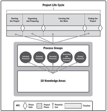 PMI includes “a guide to the project management body of knowledge (PMBOK),” a document composed of process groups and knowledge areas. Process groups include processes performed across the project life cycle, and knowledge areas are categorical ways of grouping processes. Also, they are considered specialized dimensions practitioners should manage adequately, so project success likelihood is incremented [1].