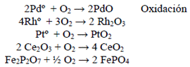 Juan R. González-Velasco et al., en el estudio del envejecimiento térmico de catalizadores para automóviles a base de Pd/Pt/Rh, soportados sobre alúmina promovida por cerio, demostraron que el catalizador monometálico de Pd es más resistente que el de Pt y Rh. Igualmente, describieron un comportamiento similar en los catalizadores bimetálicos de Pd-Pt y Pd- Rh, los cuales son más resistentes al envejecimiento que los bimetálicos de Pt-Rh [5].