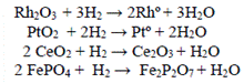 Dado el bajo contenido de los metales nobles (4 µmol Mtotal/g) y la alta composición relativa de óxidos de hierro (Fe2O3), óxido de cromo (Cr2O3), óxido de fósforo (P2O5) y óxido de calcio (CaO), se enmascara la presencia de los metales nobles en el consumo de hidrógeno.