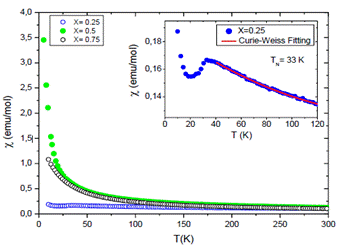 (1)where X0 is the magnetic susceptibility, θ is the Weiss constant and C is the Curie-Weiss constant which is equal to: