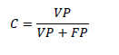 La precisión (C) hace referencia a la proporción de píxeles de un grupo estimado que pertenece a la clase de referencia [36], y está definida por la ecuación 6. C se encuentra comprendido entre 0 y 1, y aumenta a medida que disminuye el número de FP.