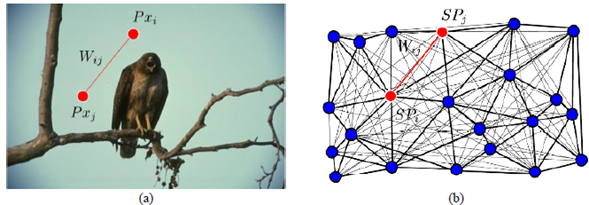 Para crear la matriz de similaridad difusa (𝑆), la imagen se representa como un grafo ponderado no dirigido, donde los nodos representan los superpíxeles, y las aristas, la similitud entre ellos [28] (figura 4).