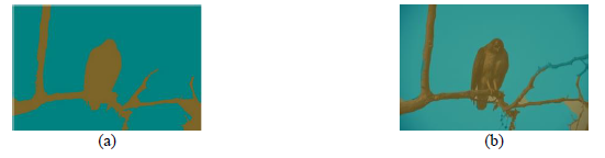 El etiquetado de píxeles es el último paso, donde se construye una nueva imagen remarcando las regiones con un color específico. En la figura 6 se muestra el etiquetado obtenido de la imagen agrupando los superpíxeles de acuerdo con el corte propuesto mediante el algoritmo K-means (figura 5).