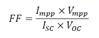 The fill factor (FF) is used as an indicator of the performance of the PV panel and, it is defined in the equation 1 as the ratio of the rectangle maximum power to the product of Voc and Isc (see equation 1). The higher the FF, the lower the slope of the I-V curve in the region of the short-circuit current, and the higher is the slope close to the open-circuit voltage [29].