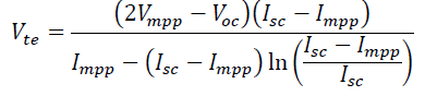 PID causes an increase in the slope of the I-V curve in the region of the short-circuits current, therefore, decreasing the fill factor. However, the fill factor can be decreased due to different causes, such as short-circuited bypass diodes, moisture, or partial shading [2]. That is why the use of FF as an indicator of PID should be supported by other analyzes or diagnostic techniques, as done in [20], where a diagnostic method is proposed and experimentally tested to detect faults associated with partial shading, reduction of the series resistance, and, PID. The detection process generates a Yes/No alert for each of the three faults. For PID, the fuzzy classifier employs a group evaluation of the fill factor, the equivalent thermal voltage (Vte defined in (2)), and the equivalent series resistance (Rse defined (3)) to detect PID. To distinguish and identify the specific factor that causes the loss of power, the group evaluation is needed as the indicators present sensitivity to more than one of the failure factors and the changes in environmental conditions.