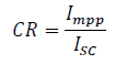 PID causes the segment between Isc and IMP P (the horizontal zone) of the I-V curve to fall (see Figures 1 and 2). This higher-than-expected slope in the horizontal zone of the I-V curve can be quantified by comparing the current ratio (CR) of the PID-affected PV panel I-V curve to a reference value [22], for a given operating condition. The current ratio is the relation between the PV current at maximum power (IMP P ) and the short-circuit current (ISC ), as it is expressed in (4).