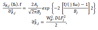 as the area of the PSD around the 𝑗𝑡ℎ harmonic, the 𝑗𝑡ℎ Dynamic Load Factor (DLF), the normalized frequency 𝑓/( 𝑗 𝑓𝜔), and parameters 𝐴𝑗 and 𝐵𝑗 for the Gaussian shape spectrum that can be obtained from [30].