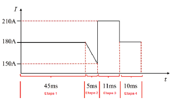 La figura 12 muestra la optimización de la forma de onda utilizada en la corriente pulsada, que consta básicamente de 4 etapas: