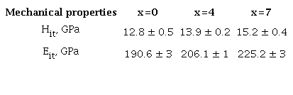 This indicates that the hardness depends on Co content. The hardness, elastic modulus obtained by Oliver-Pharr method, are summarized in Table 4. The addition of Co induces mechanical hardening, manifested in an increase of indentation testing hardness (HIT) and indentation elastic modulus (Err).
