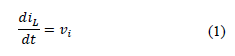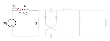 Figure 2 shows the circuit when the switch is closed (first commutation), the inductor (L) is parallel with the source (vi ) which means that (L) is charging. Using the passive law of signs, voltage and current references are labeled. In this step, there is still no information available for obtaining the references for other components.