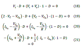 The average of the signals is defined by: the average current of inductor L (Il), the average current of inductor L2(Il2), the average voltage of capacitor C3(Vc3), the average voltage of capacitors C (VC), and the average value of the function u (D) that is called duty cycle.