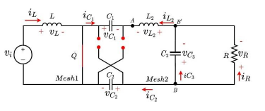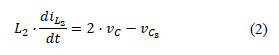Applying Kirchoff's voltage law in mesh 2, the inductor L2 is charging, Equation (2) is obtained.