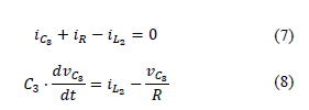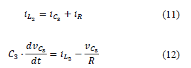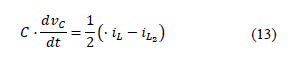 To obtain the differential equations of the HC converter, it is considered that C1= C2= C. These capacitors share terminals; therefore, they are in parallel connection, which indicates that they have the same voltage Vc. Furthermore, the capacitor currents are considered equal to ic.