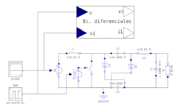 Keywords: Hybrid Cuk converters, power electronics (PE) devices, differential equations, OpenModelica, voltage and current references, capacitor, inductor, power switch, diode, energy.