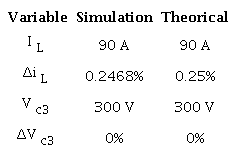 Table 1 permits validating the theoretical calculation with the simulation results. It can be seen that both results are similar, they present the same average and ripple value. It can also be seen that the voltage ripple in C3 tends to zero because the inductor L2 is close to the output.